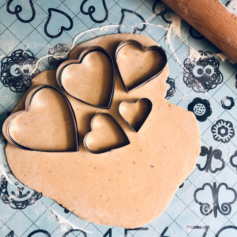 Mix all together into the firm dough. Place the dough in between two cling foils and roll out. Using the cookie cutters to cut out desired shapes. Place on the baking paper and bake for about 10min at 150 C.