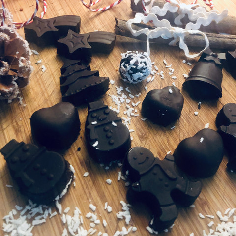 Blend all together in the food processor and either spread the dough into the plastic box or into the silicone form.Freeze it for about 30min and then coat in the melted dark chocolate and store in the fridge. I usually freeze first the chocolate in the silicone form and then top it with the brownie dough and freeze again for about 30min, and store again in the fridge.